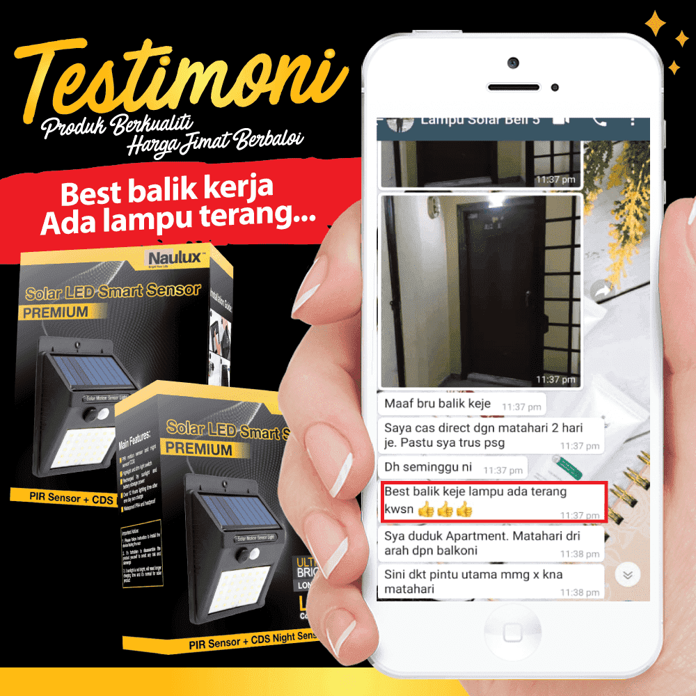 Ini Antara Feedback Customer Yang Dah Pasang Lampu Solar 48 LED Naulux