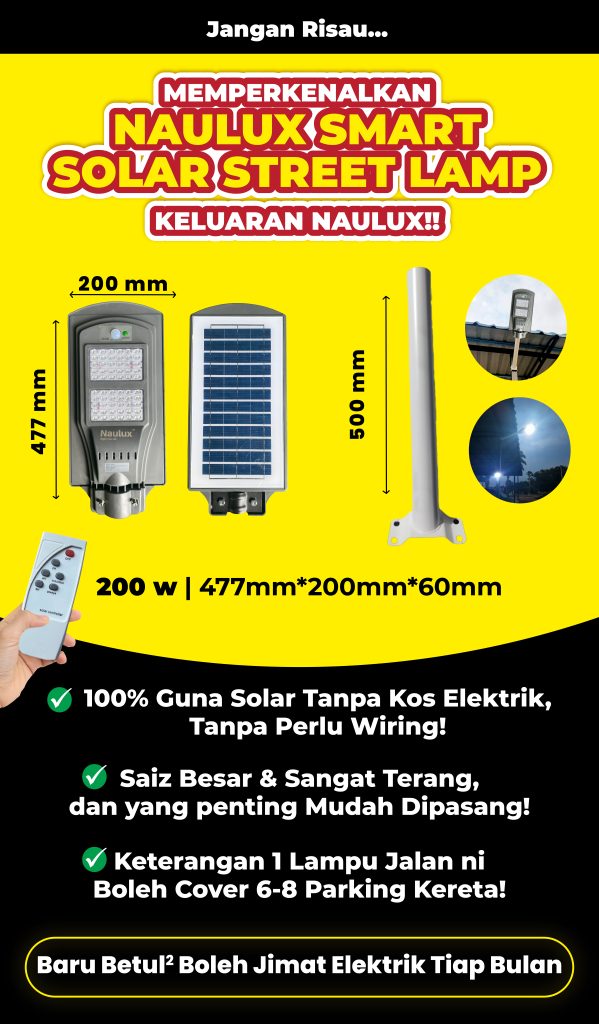 TAK PERLU RISAU LAMPU SOLAR NAULUX NI ADA 100% JAMINAN