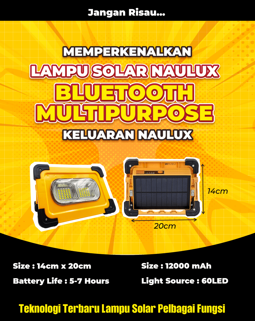 TAK PERLU RISAU LAMPU SOLAR NAULUX NI ADA 100% JAMINAN