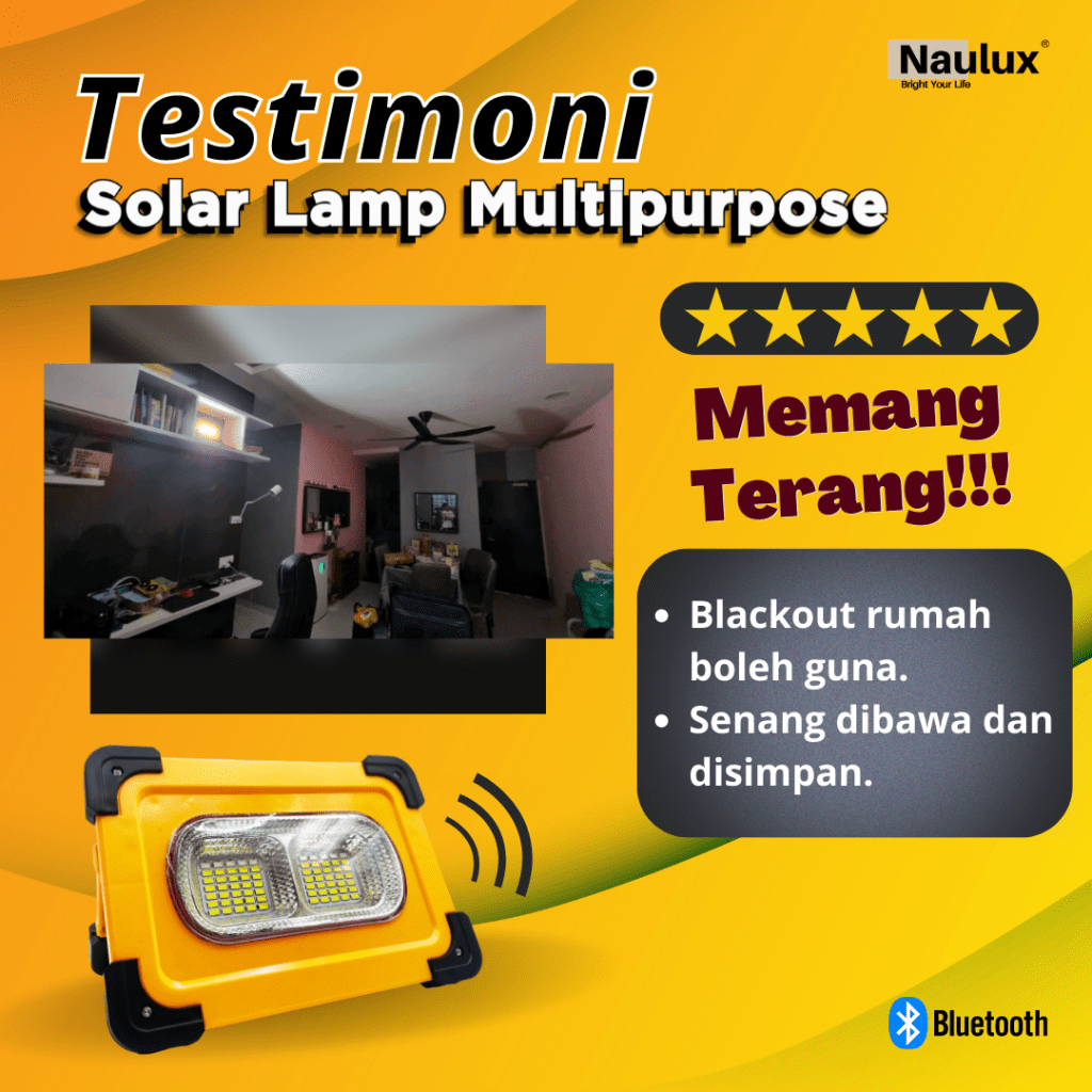 Ini feedback Kenapa Perlu Dapatkan Naulux Lampu Solar Bluetooth Multipurpose