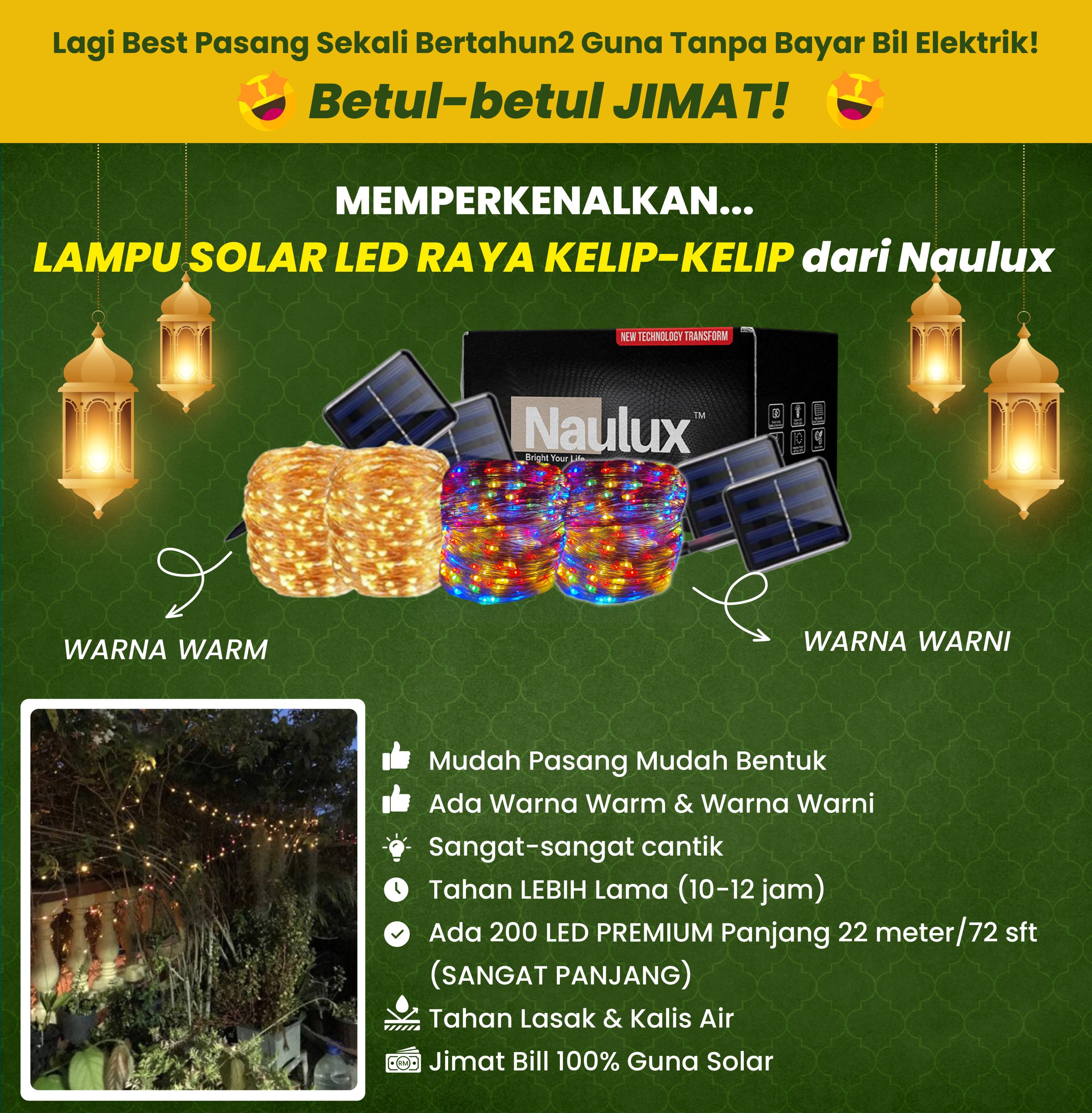 TAK PERLU RISAU LAMPU SOLAR NAULUX NI ADA 100% JAMINAN