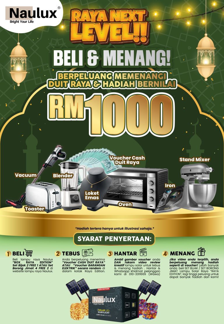 Kalau rumah besar atau nak JIMAT boleh kongsi beli dengan keluarga atau kawan, set ni SANGAT2 sesuai dan Berbaloi2 sebab Berpeluang Menang Cabutan Bertuah Emas 916 dan Barang Elektrik