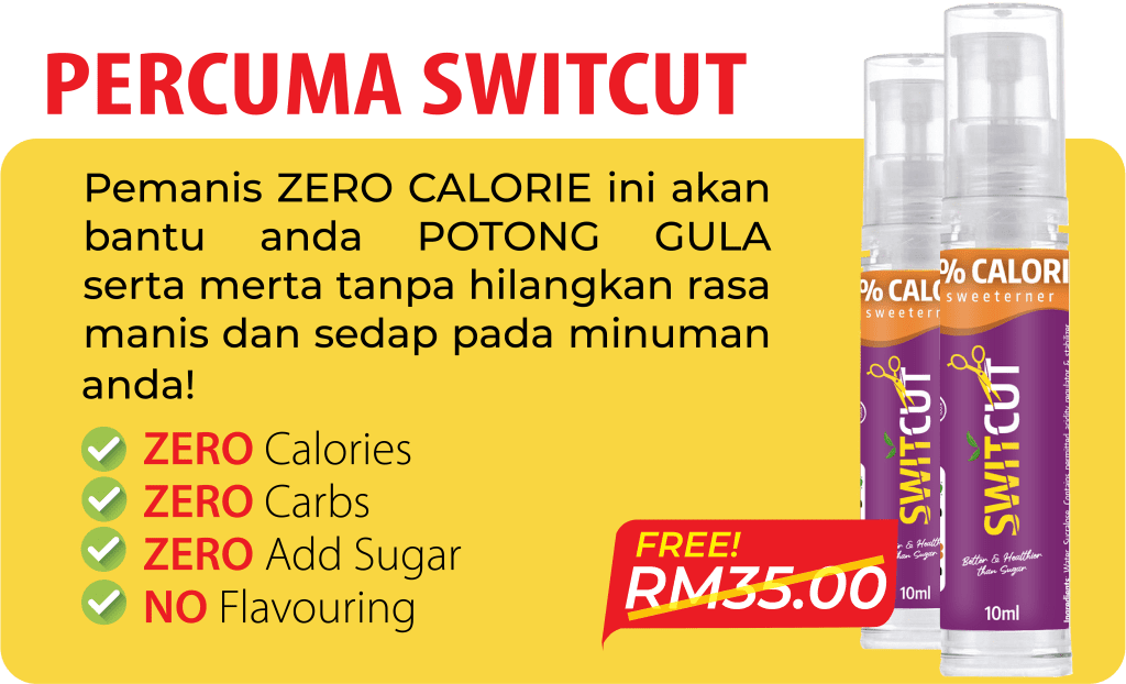 Tiada pantang yang ketat. Kurangkan pengambilan gula dan boleh gunakan SugaCut sebagai pengganti manis tanpa kalori.