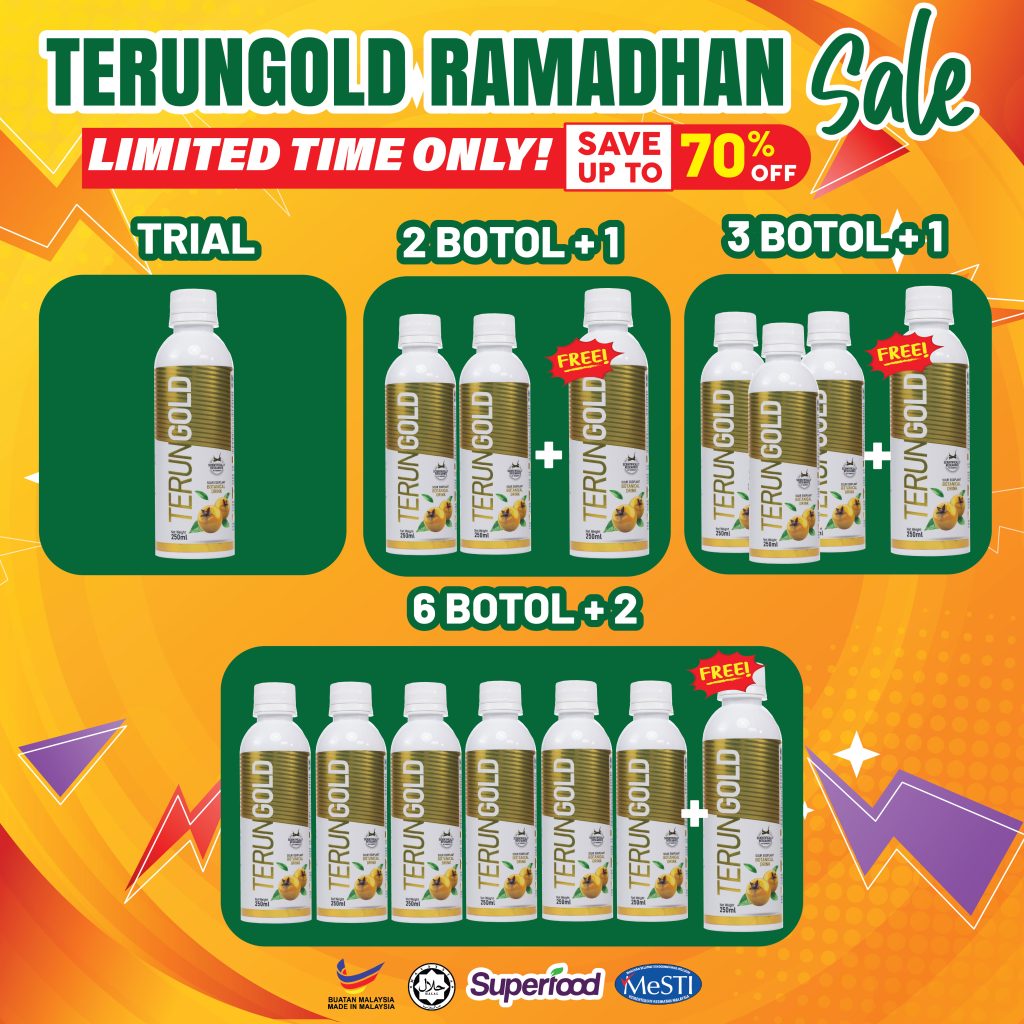 Minuman botani TerunGold adalah 250ml bagi sebotol