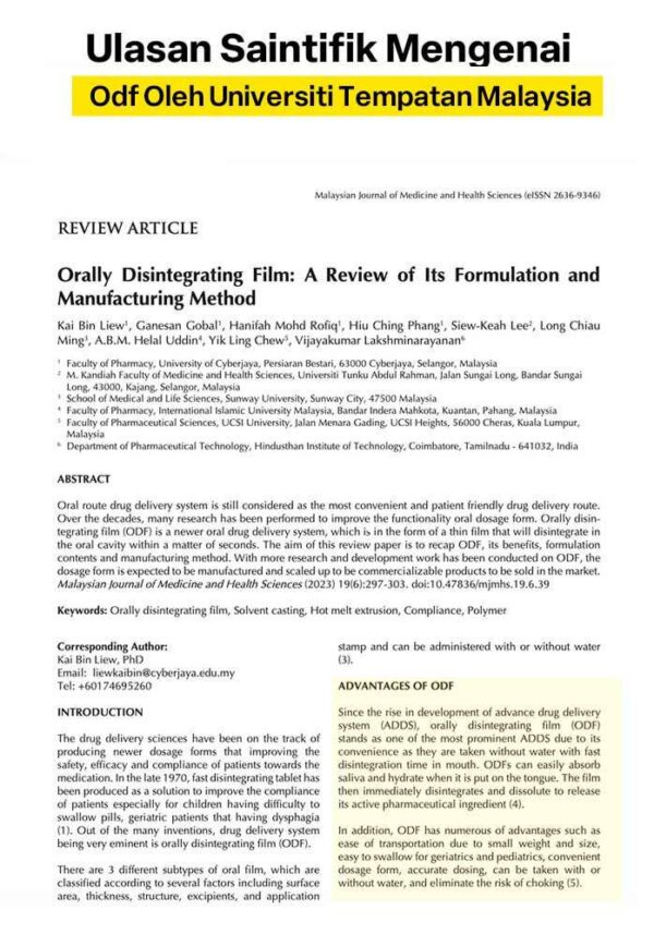 Oral Film (ODF) adalah kaedah perubatan terbaru. Bukan Sahaja Sifatnya Yang Kecil & Mudah Disimpan Dalam Dompet, Malah Senang Larut dan Dos Lebih Tepat Untuk Elak Risiko dari Tercekik Pil/Tablet.